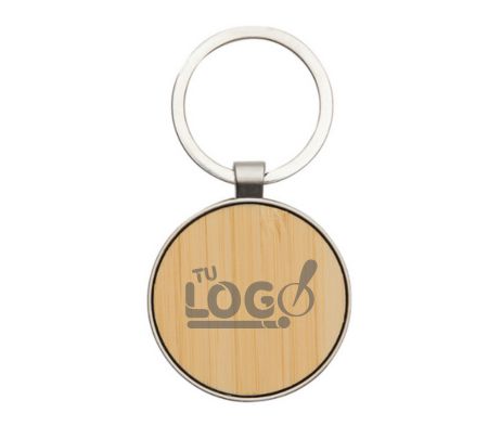 Descripcion del ProductoLlavero con forma circular. Estructura metálica con aleación de zinc con acabado brillante y panel frontal de bambú barnizado.