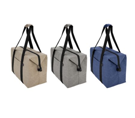 Descripcion del ProductoBolso térmico. Cierre posterior con dos tiradores. Hebillas metálicas en los laterales que permiten cambiar su formato a prisma. Bolsillo frontal. Dos asas con refuerzo de velcro.